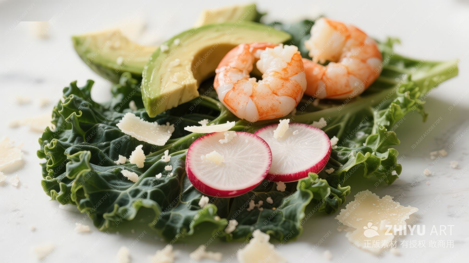 虾仁牛油果沙拉配羽衣甘蓝