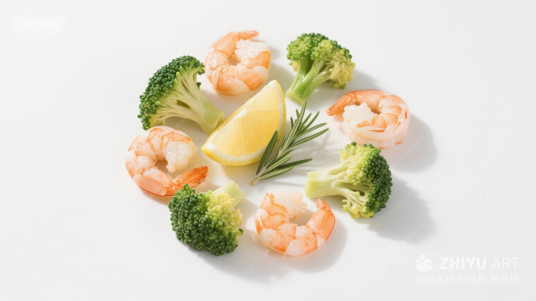 虾仁、芦笋、西兰花与柠檬的健康搭配