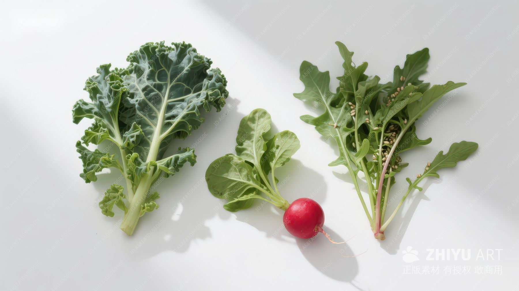 新鲜蔬菜组合:羽衣甘蓝、生菜与樱桃萝卜