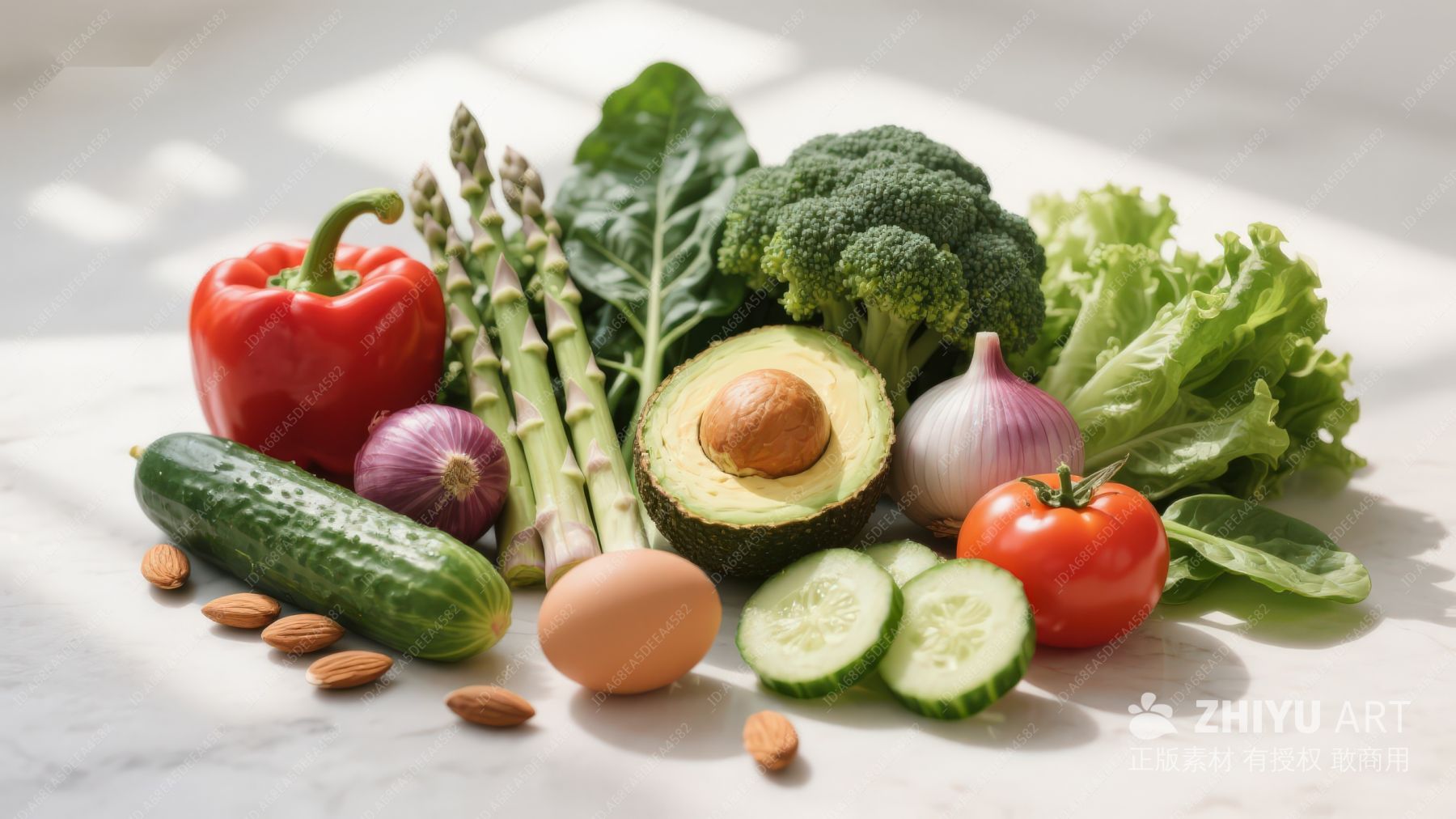 新鲜蔬菜水果与鸡蛋组合
