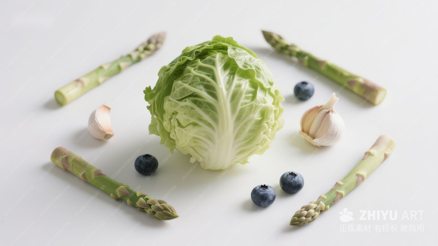新鲜蔬菜与蓝莓静物摆拍