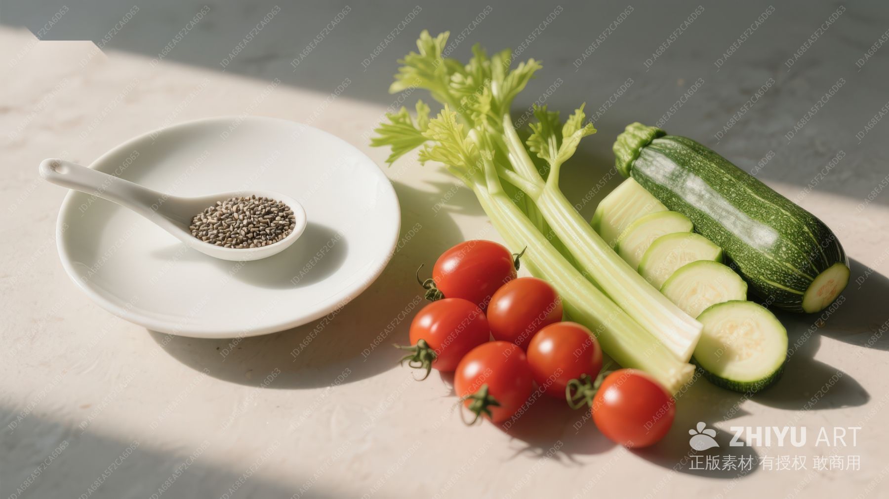 新鲜蔬菜与香料静物摆拍