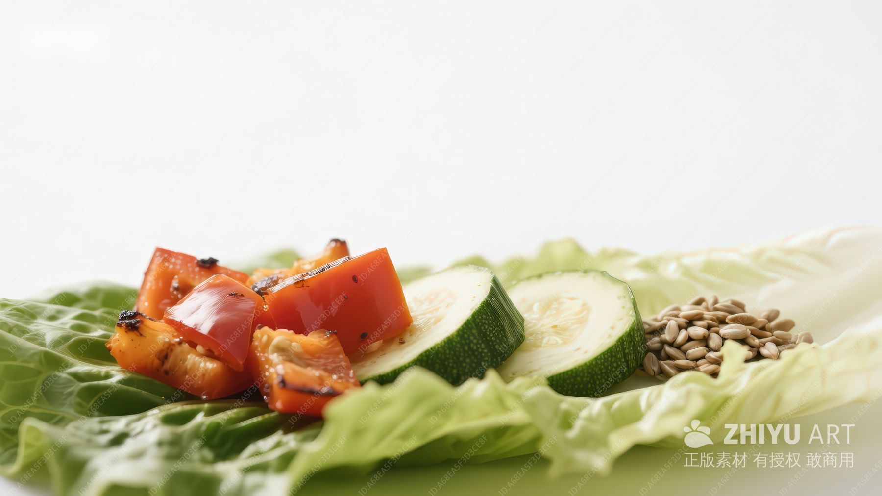 新鲜蔬菜拼盘,包含生菜、黄瓜和红椒
