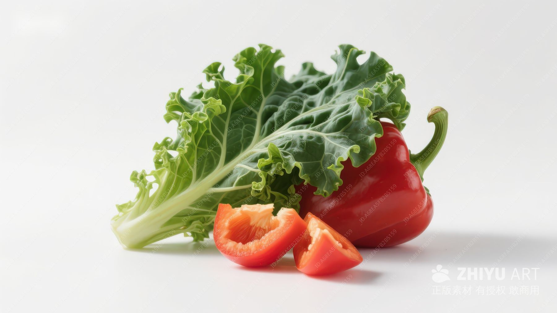 新鲜蔬菜:芹菜、彩椒与羽衣甘蓝