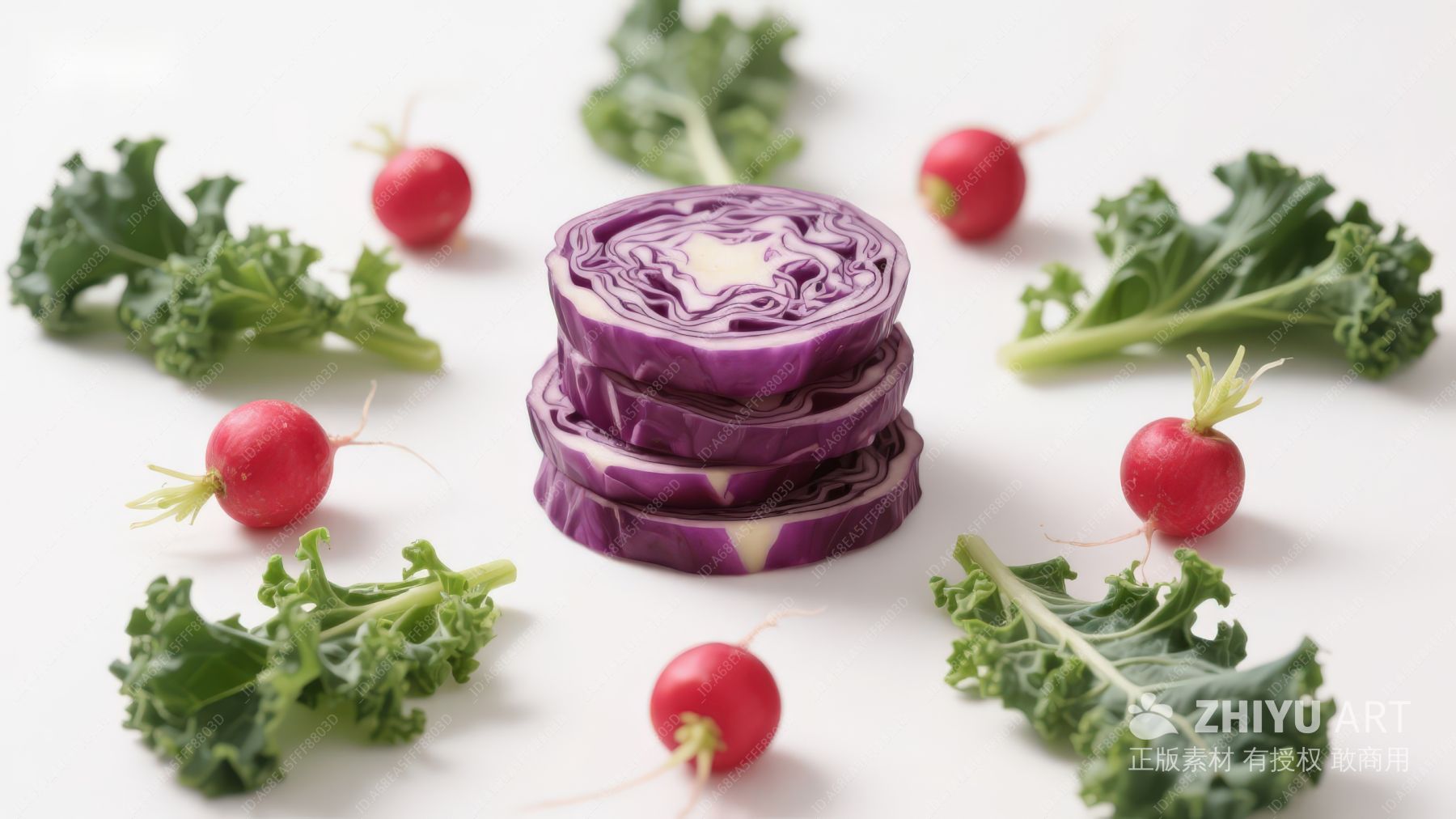 紫甘蓝、羽衣甘蓝与烤蔬菜片