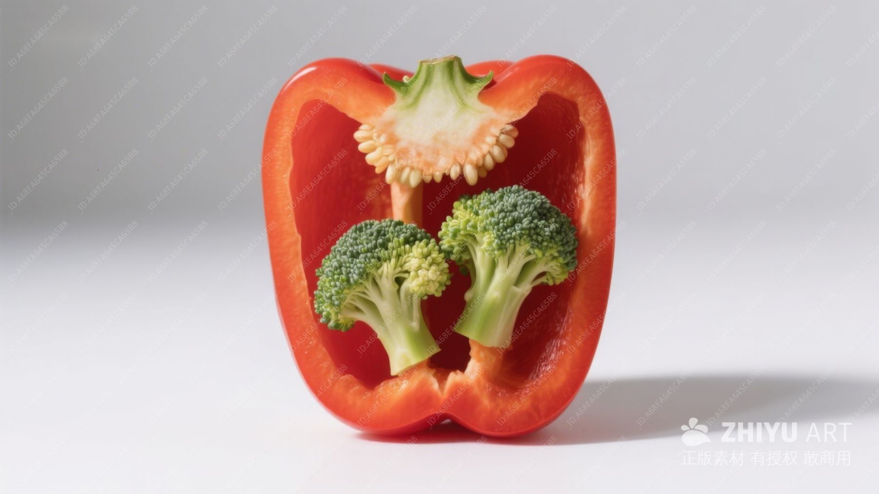 新鲜蔬菜组合:西兰花、彩椒与紫甘蓝