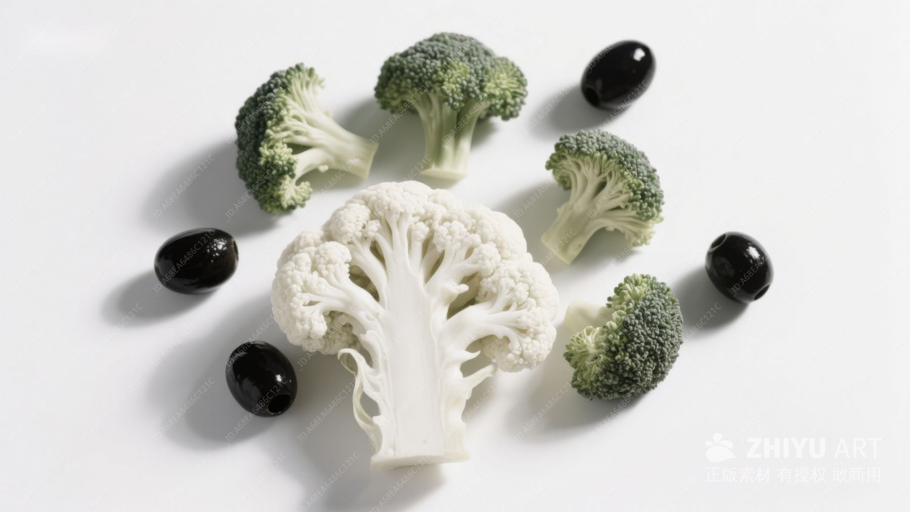 新鲜蔬菜组合:西兰花、花椰菜与菠菜