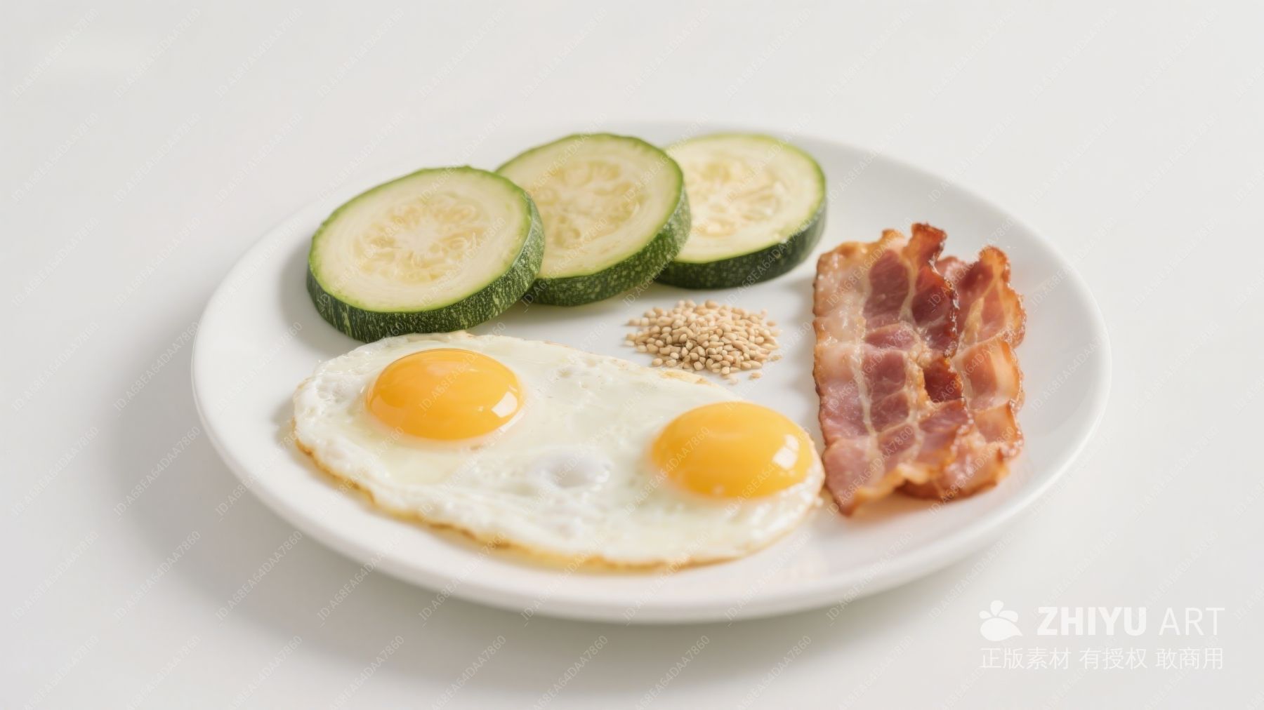 煎蛋配培根和西葫芦