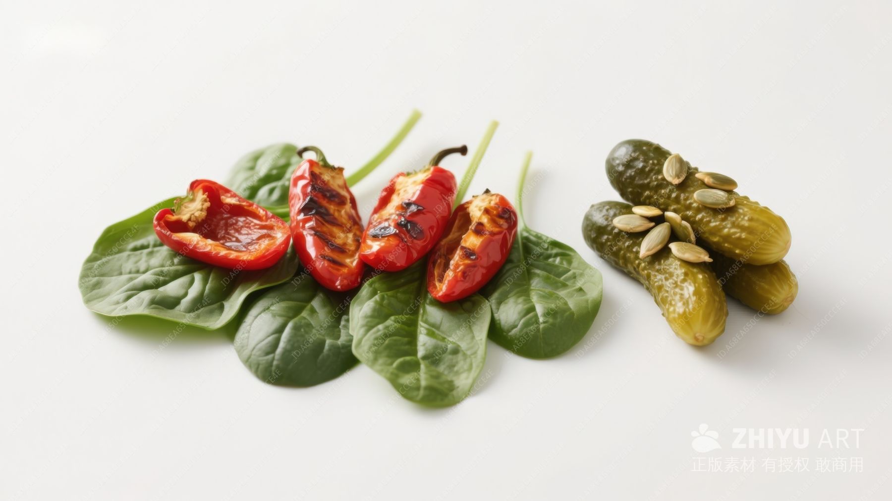 新鲜蔬菜组合:菠菜、黄瓜与红椒