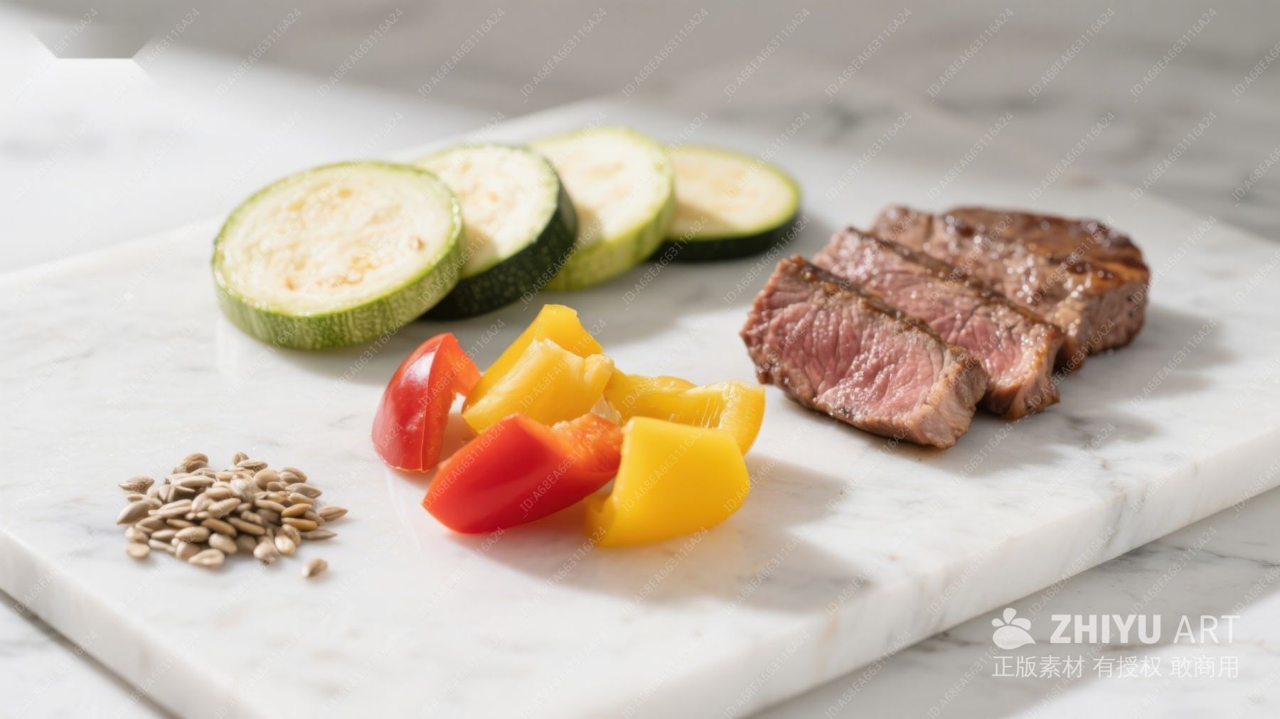 切片牛排与蔬菜摆盘