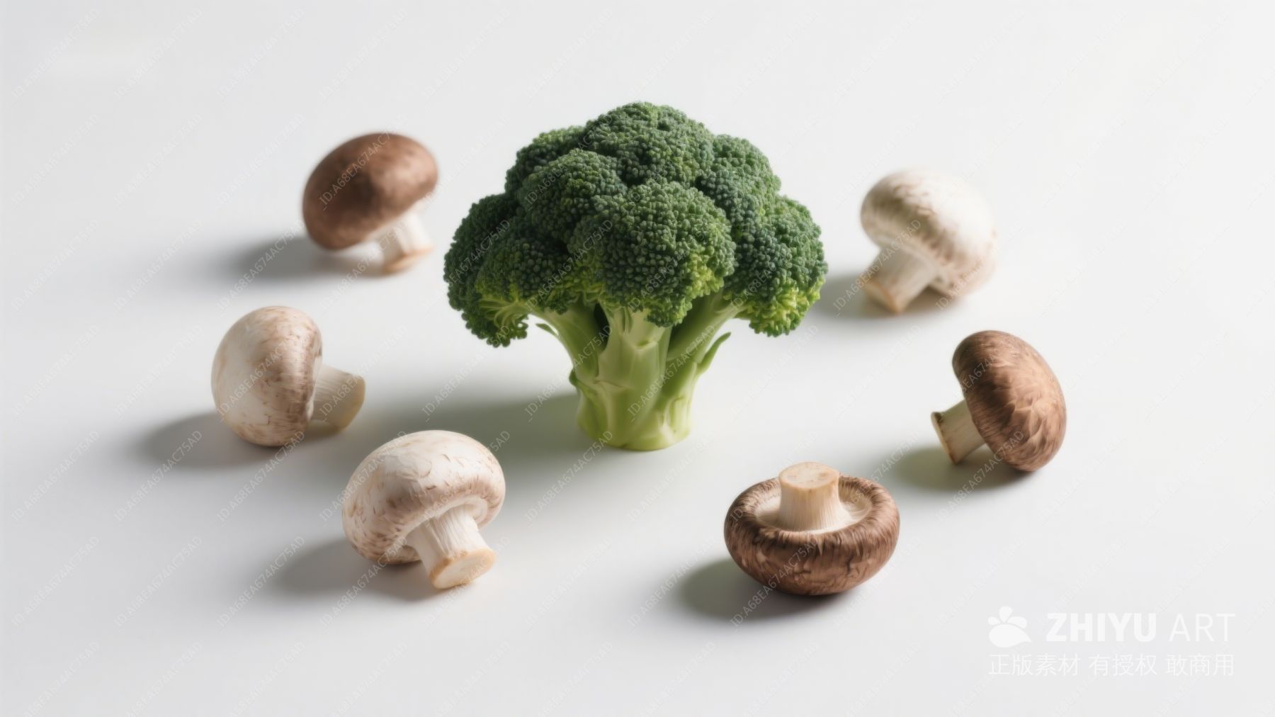 西兰花与蘑菇静物摆拍