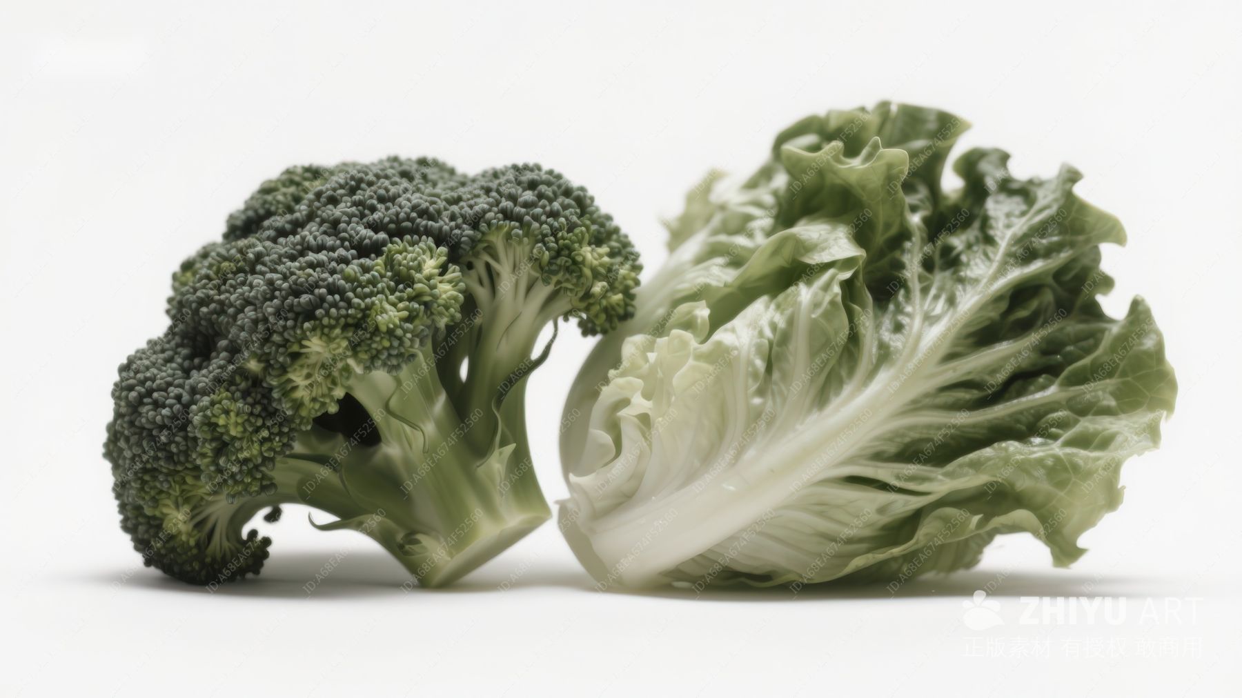 西兰花与生菜并置展示