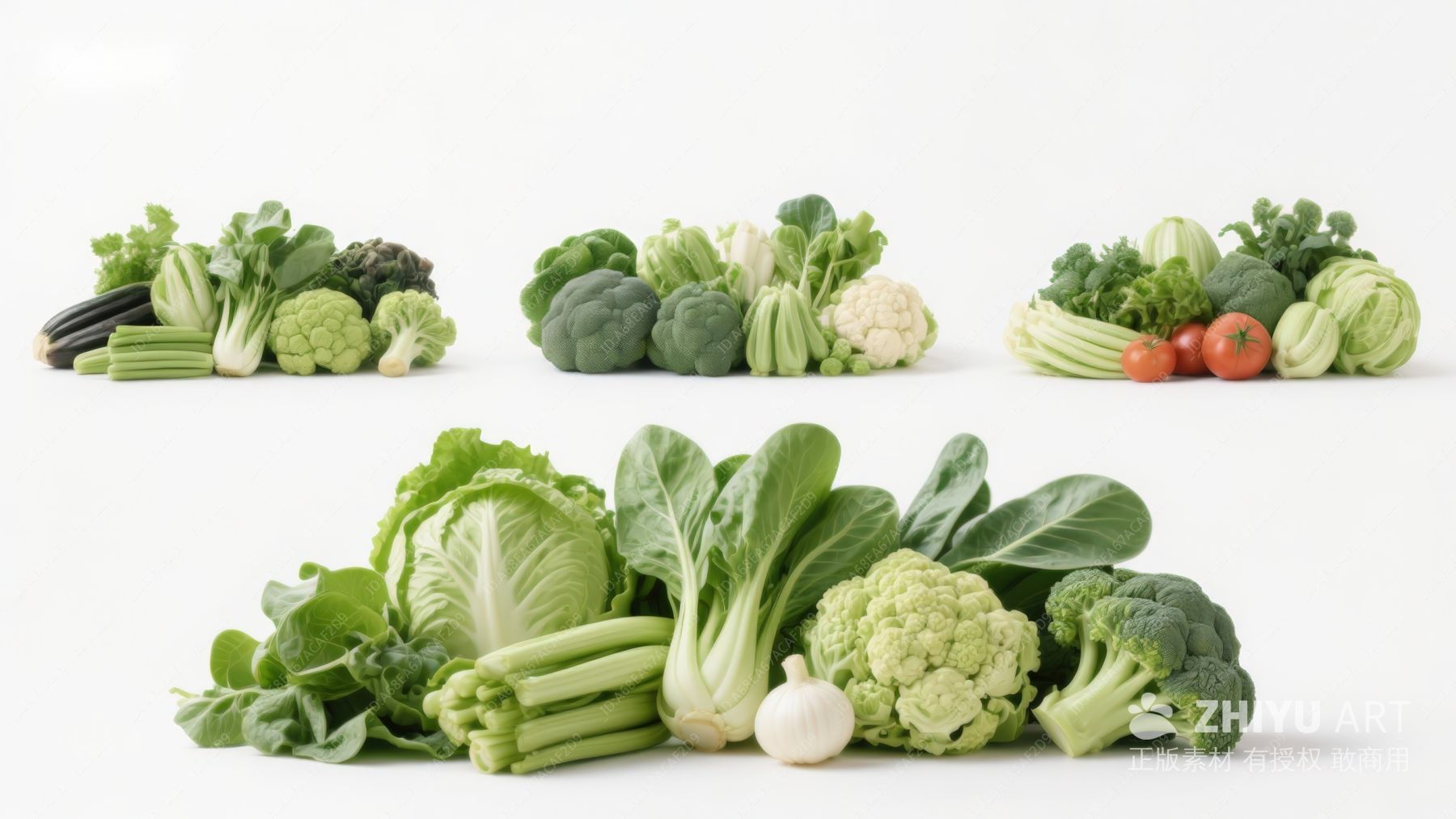 多种绿色蔬菜静物展示