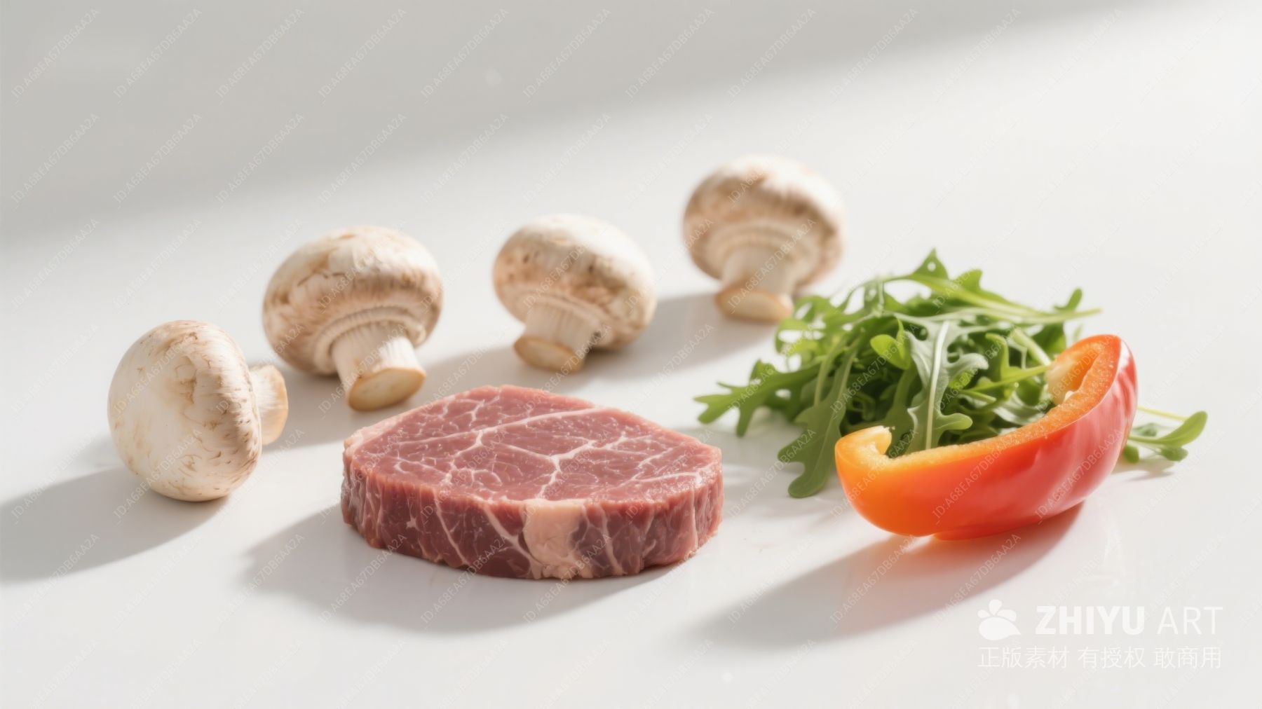 新鲜蔬菜与肉类食材摆拍