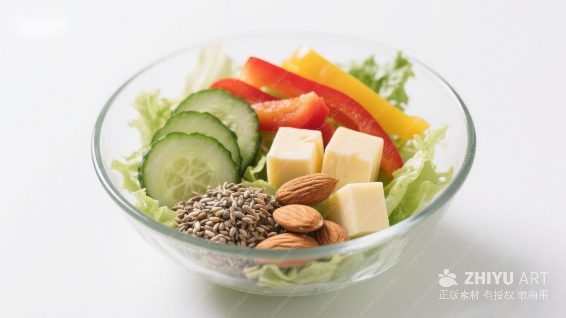 碗装蔬菜沙拉配坚果和奶酪
