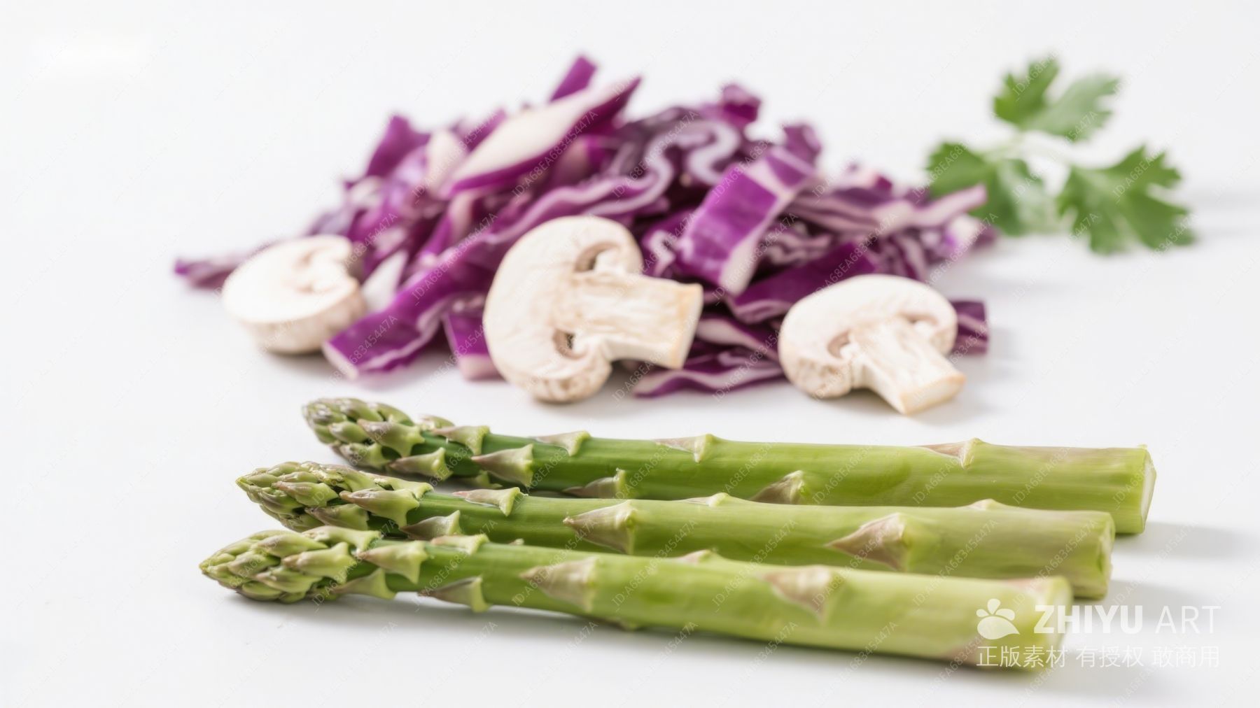 新鲜蔬菜组合:芦笋、蘑菇与彩椒