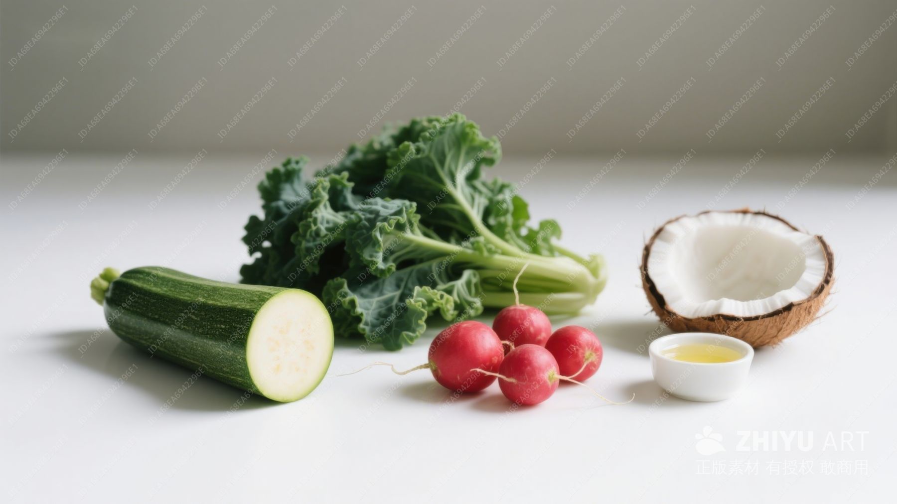 新鲜蔬菜组合:花椰菜、黄瓜与樱桃萝卜