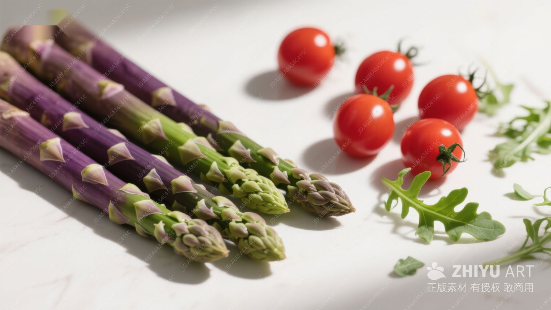 新鲜芦笋与樱桃番茄和杏仁的组合