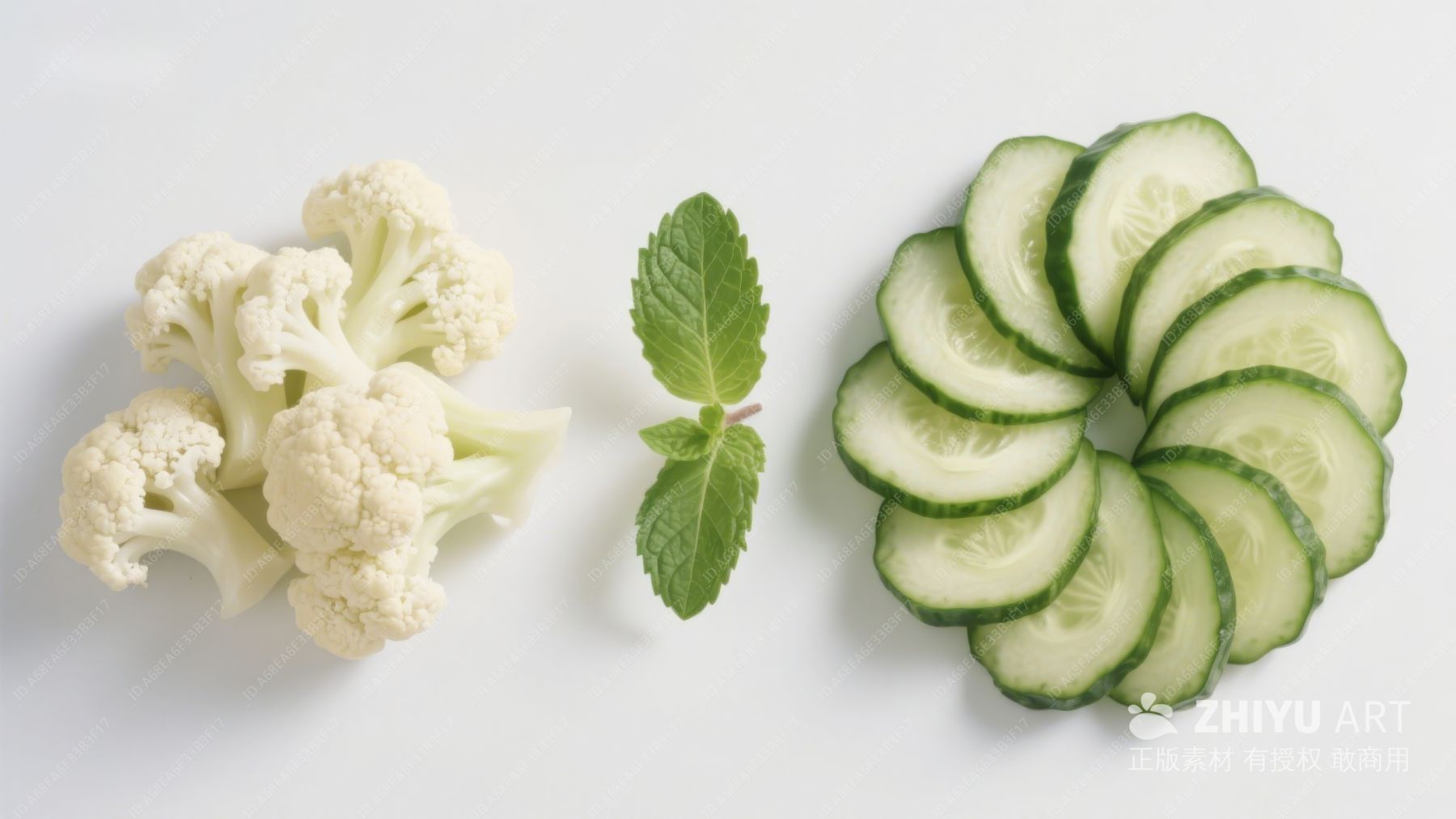 花椰菜、薄荷与黄瓜片摆盘