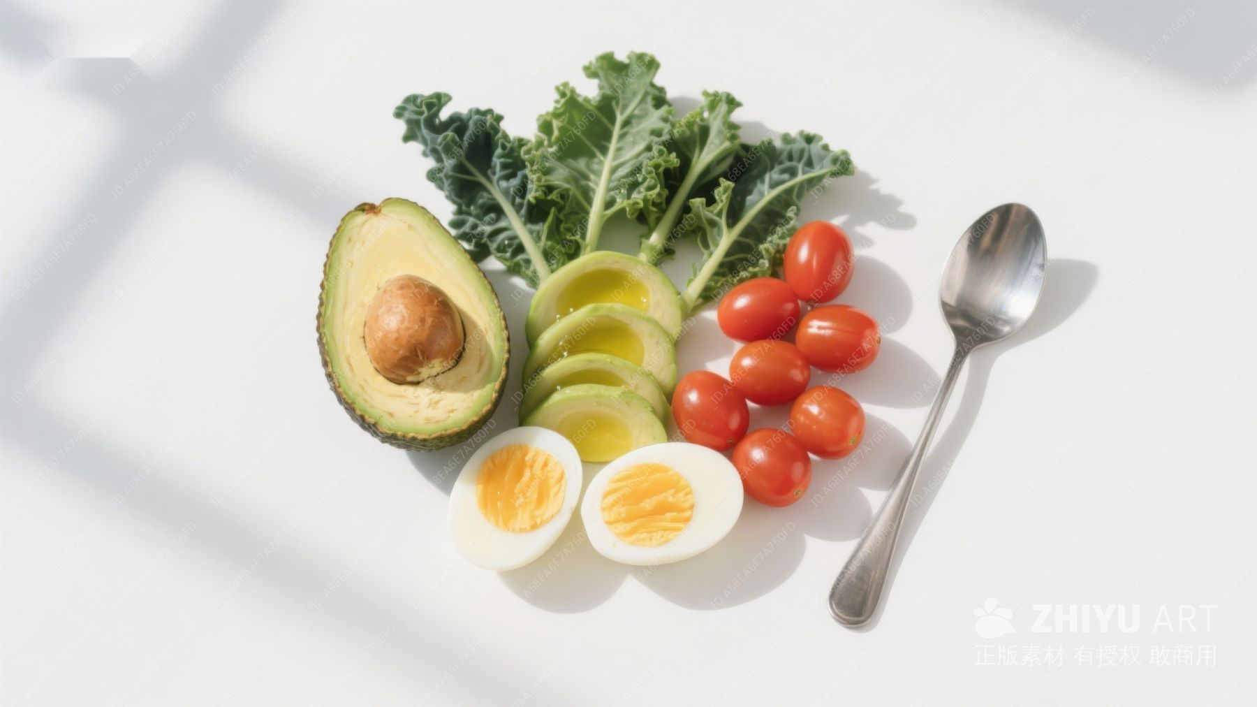 健康食材组合:牛油果、鸡蛋与蔬菜