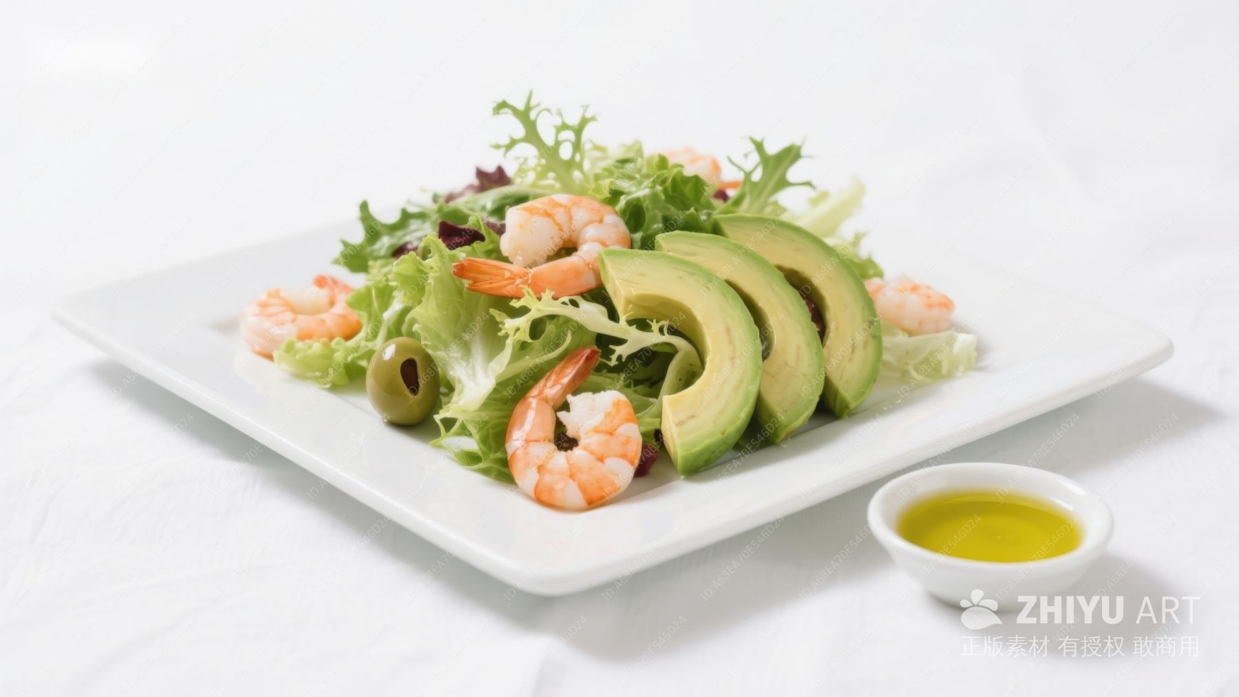 虾仁牛油果沙拉配橄榄油