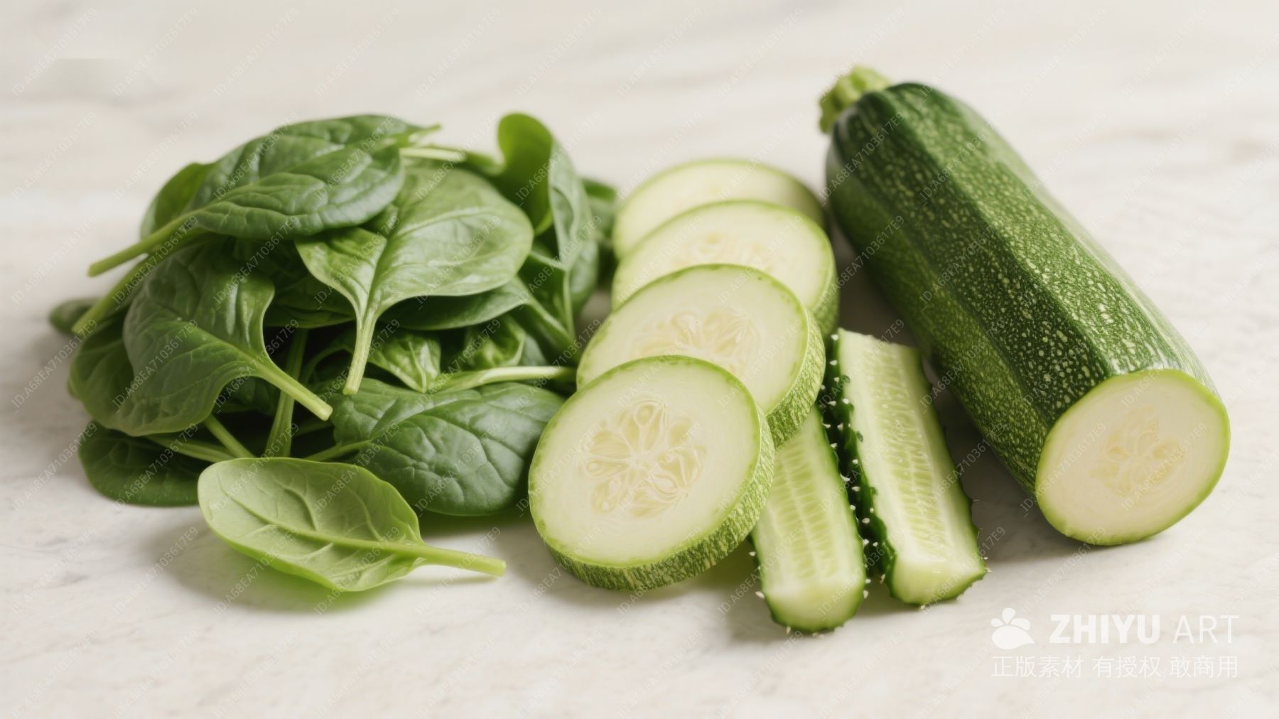 新鲜菠菜与黄瓜切片