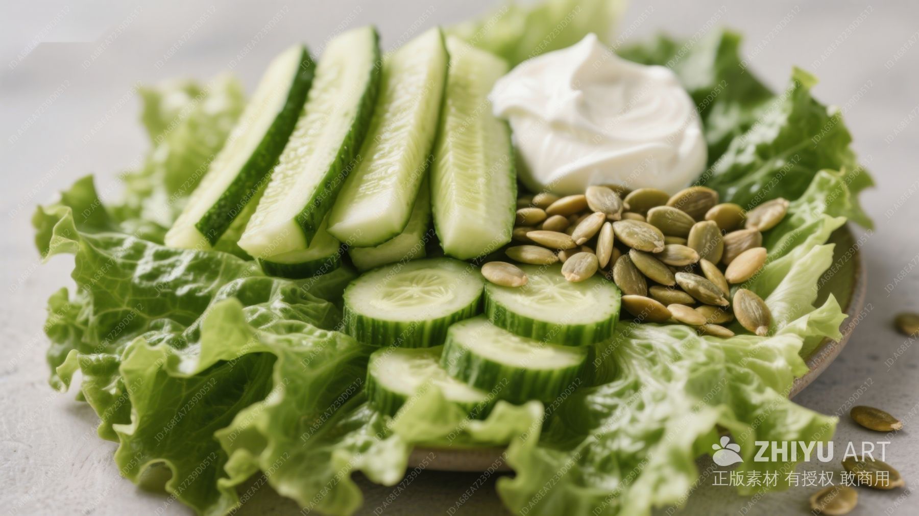 新鲜蔬菜沙拉,搭配黄瓜和樱桃萝卜