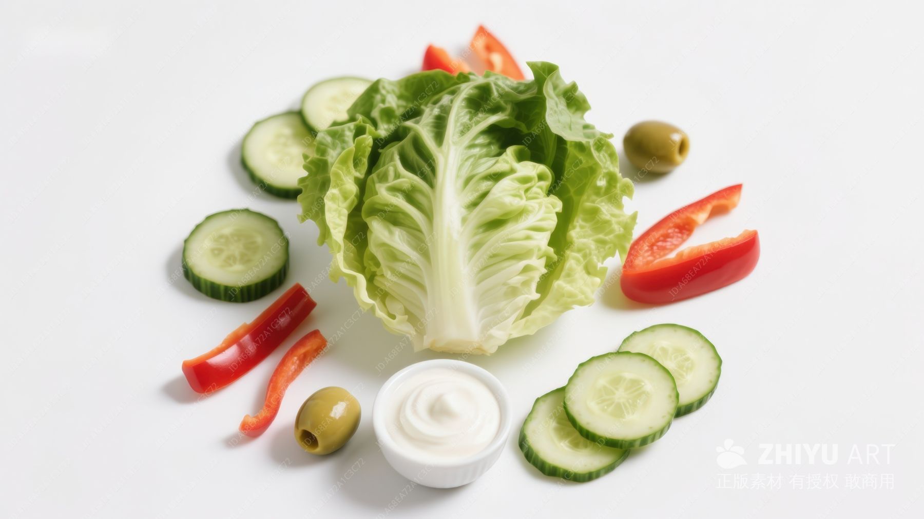 新鲜蔬菜与沙拉酱摆拍