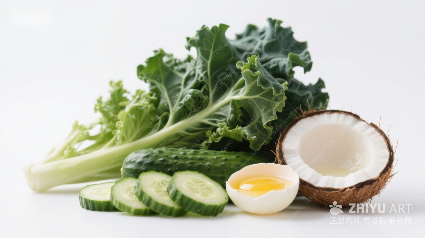 新鲜蔬菜与椰子组合