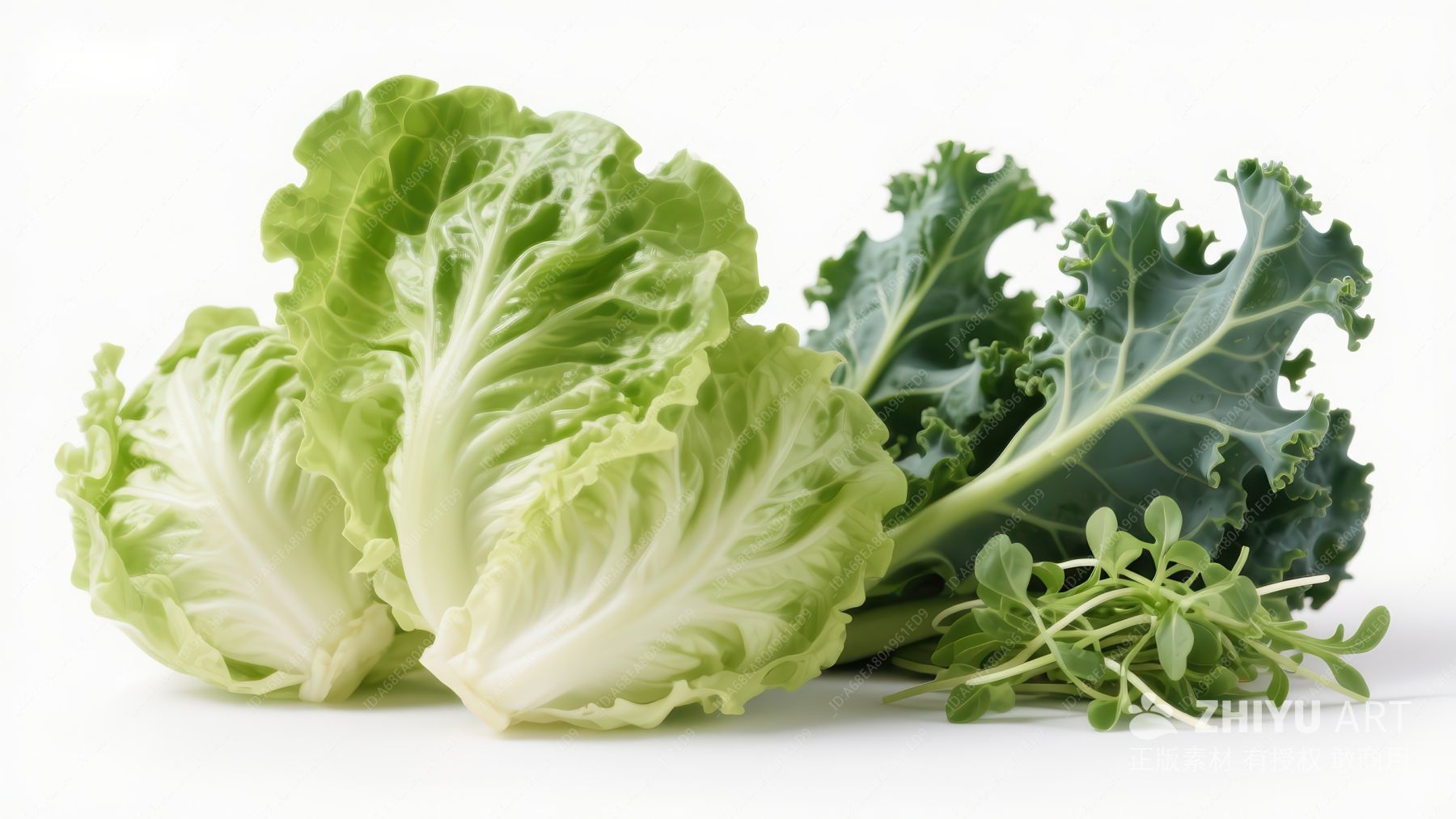 新鲜蔬菜组合:羽衣甘蓝、黄瓜片与生菜
