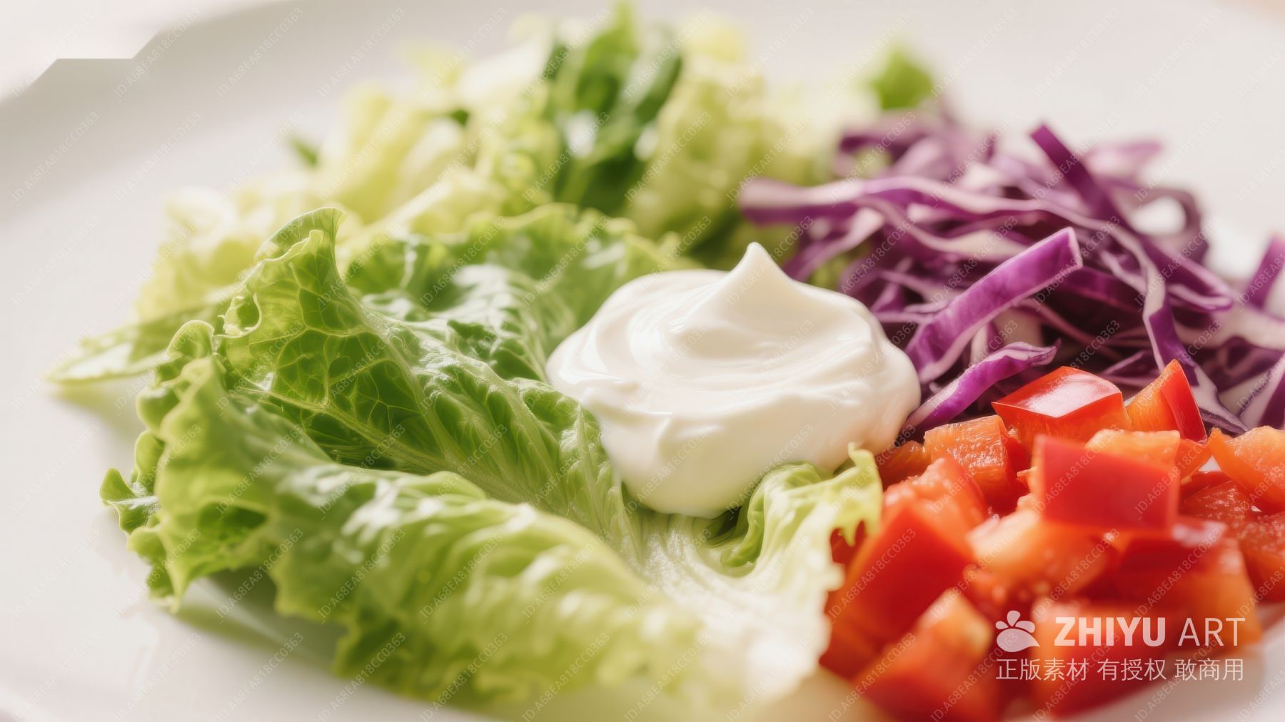 新鲜蔬菜沙拉配烤茄子和酸奶油