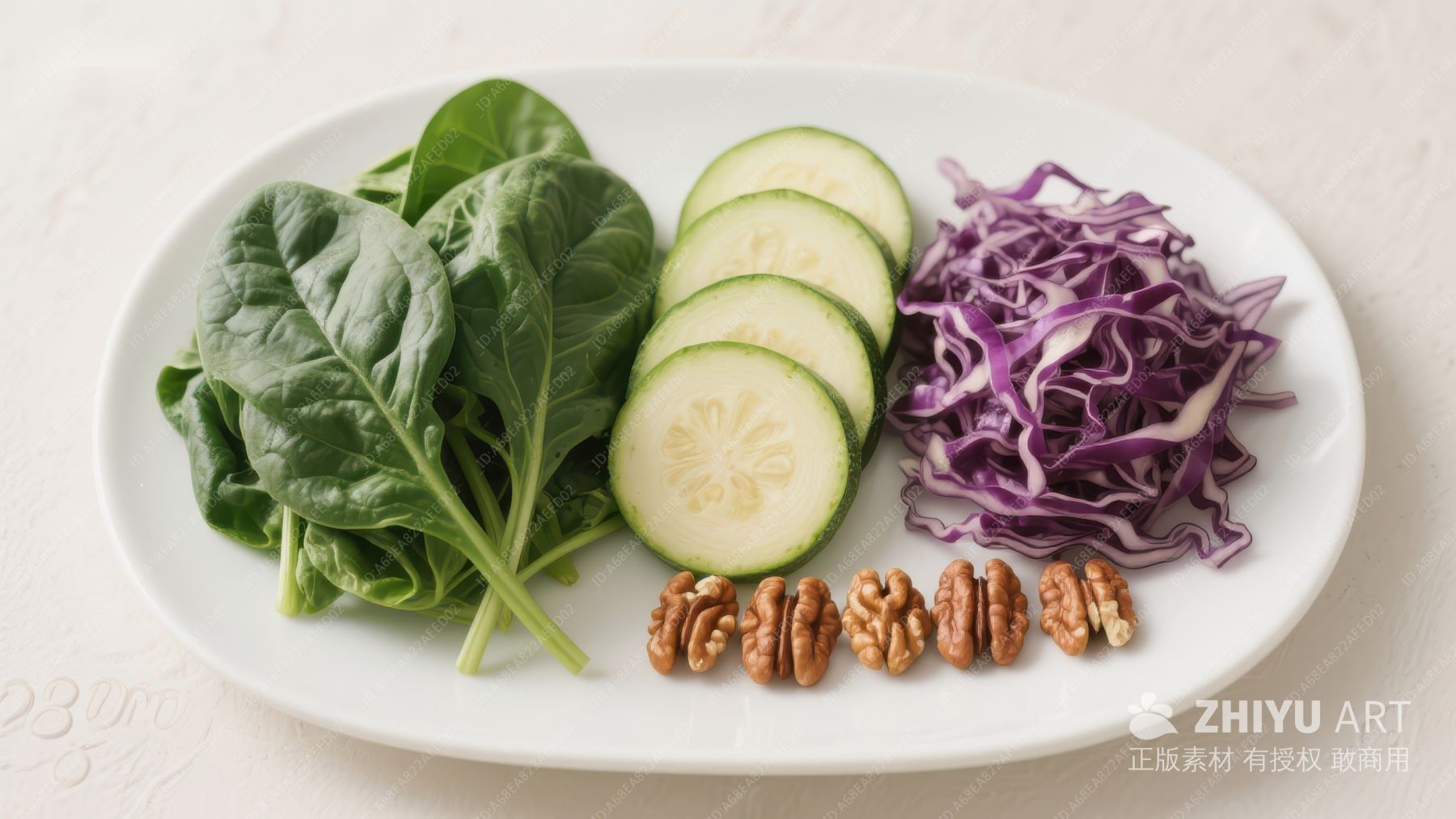 新鲜蔬菜与坚果摆盘