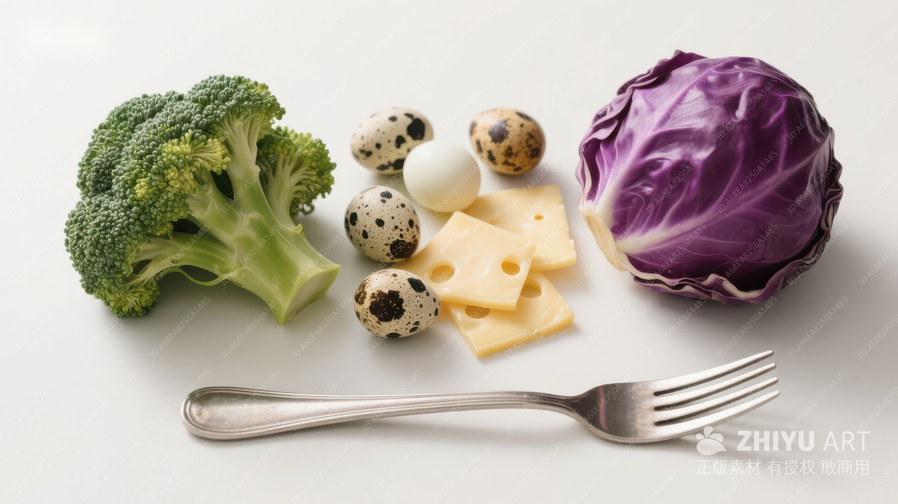 新鲜西兰花与鹌鹑蛋的组合