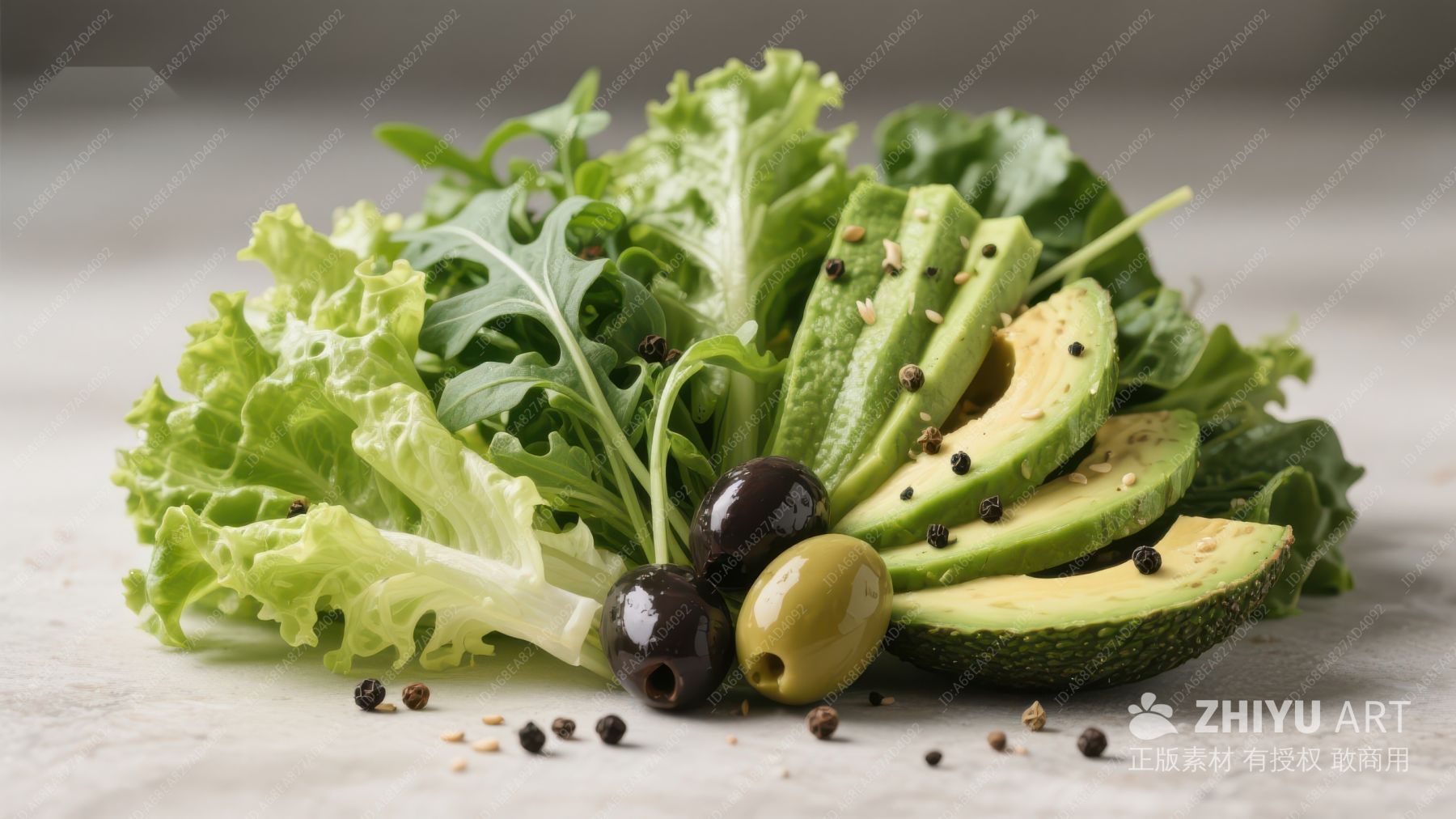 生菜配牛油果与黑橄榄