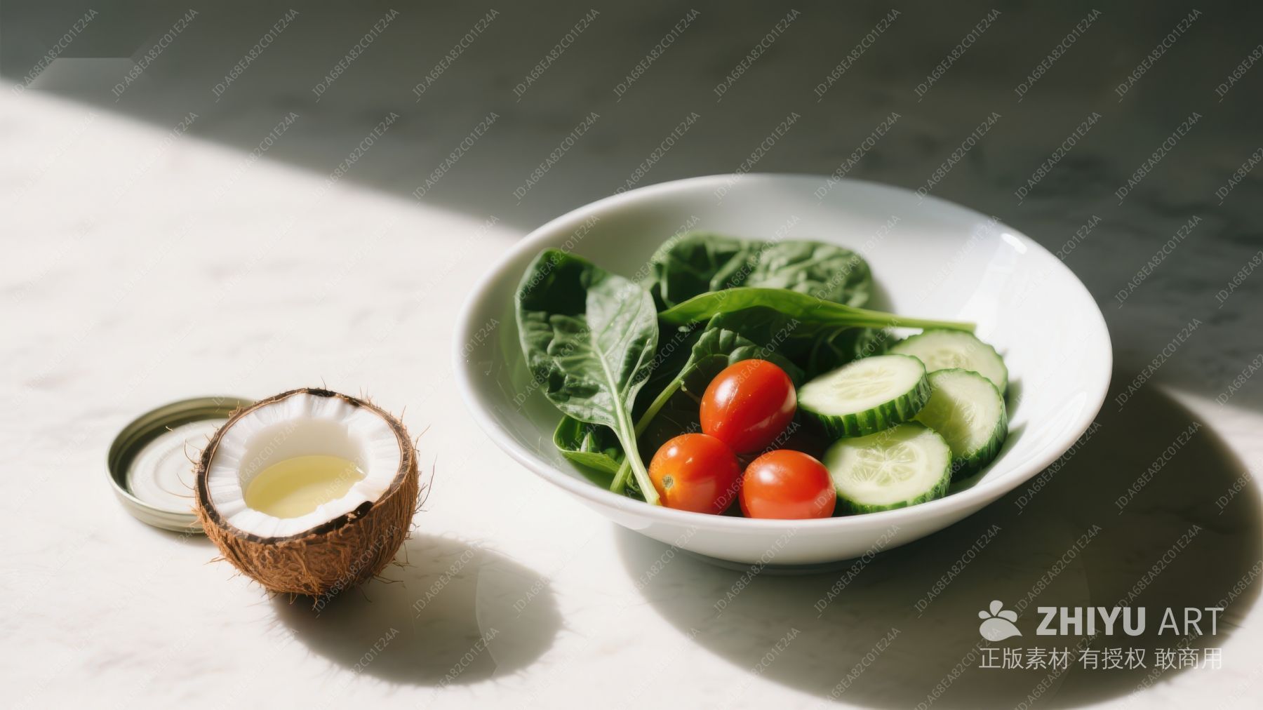 新鲜蔬菜与椰子的健康搭配