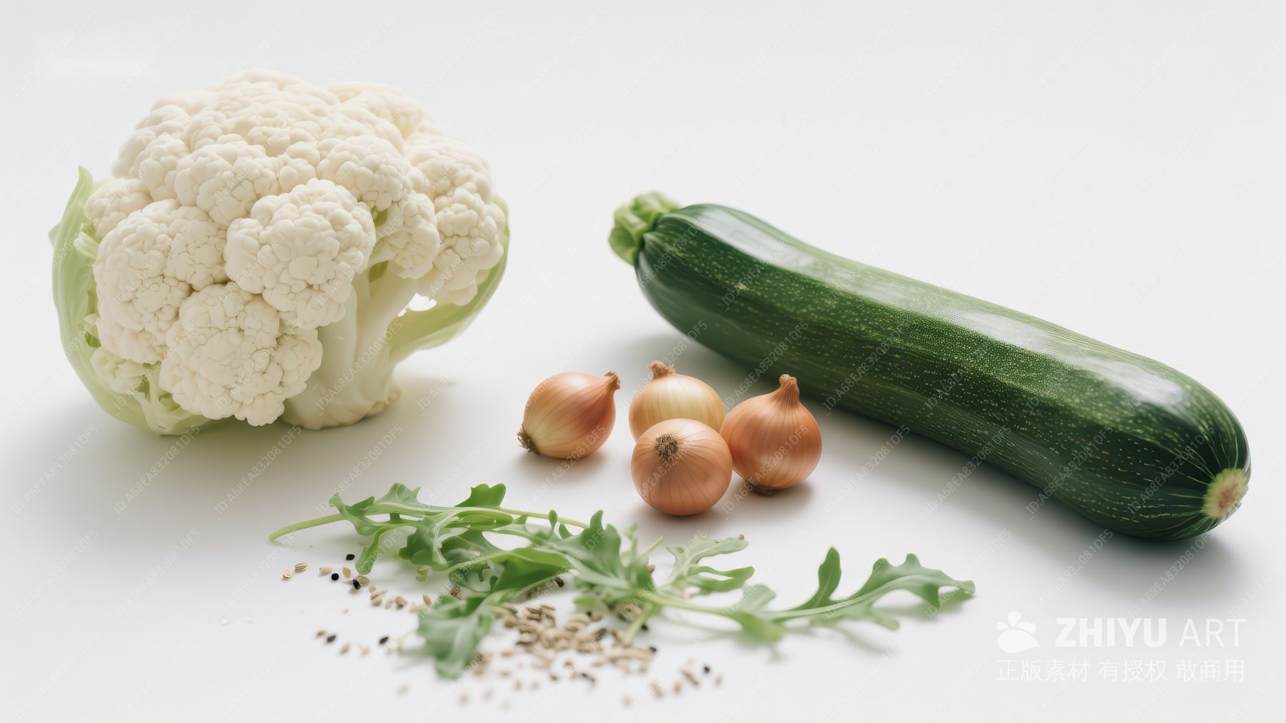新鲜蔬菜组合:花椰菜、黄瓜和洋葱