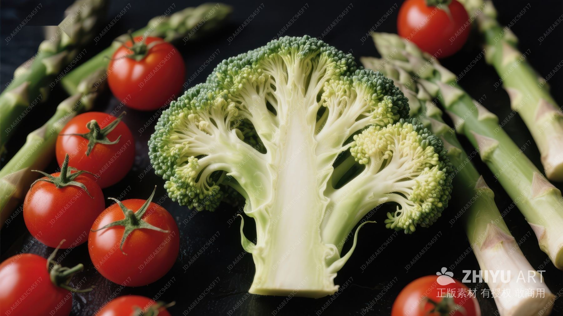 新鲜蔬菜:西兰花、芦笋与樱桃番茄