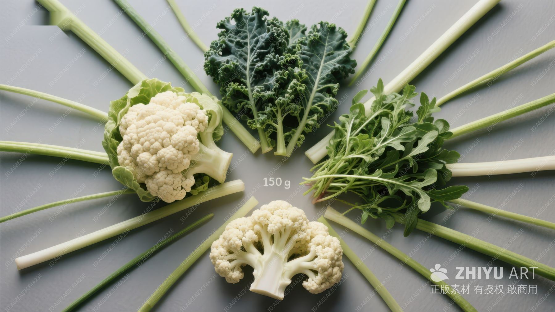 新鲜蔬菜组合:西兰花、羽衣甘蓝与坚果