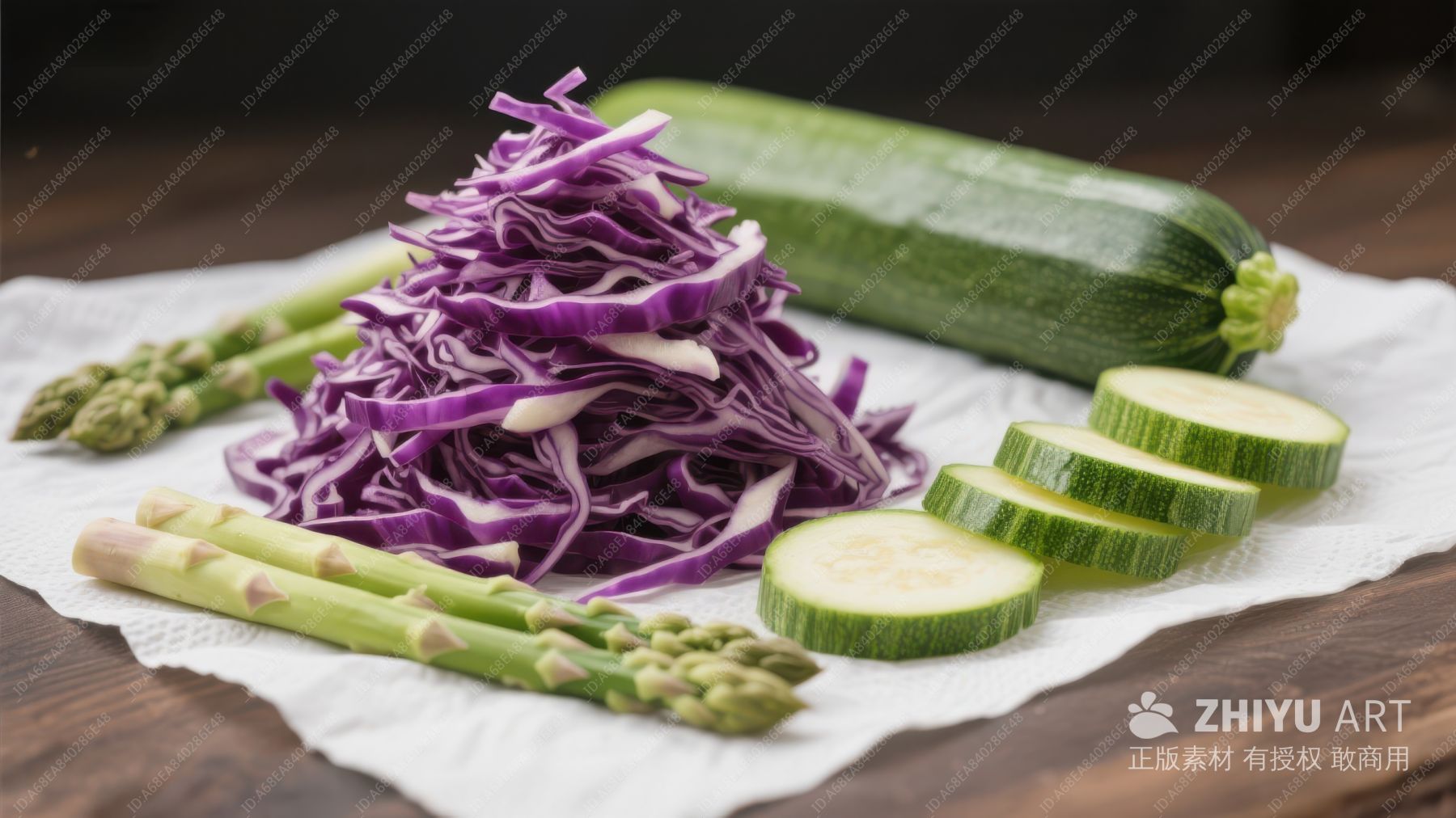 新鲜蔬菜组合:紫甘蓝、西葫芦与芦笋