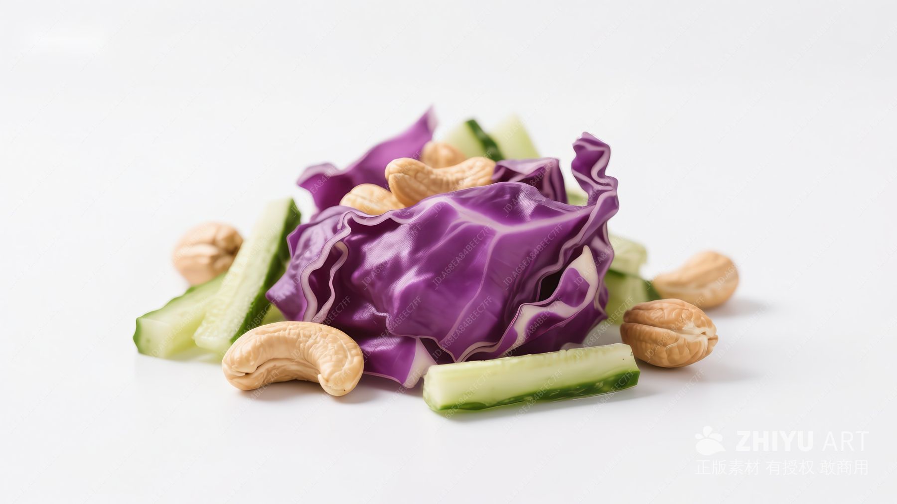 紫甘蓝、黄瓜和黑橄榄的清新组合
