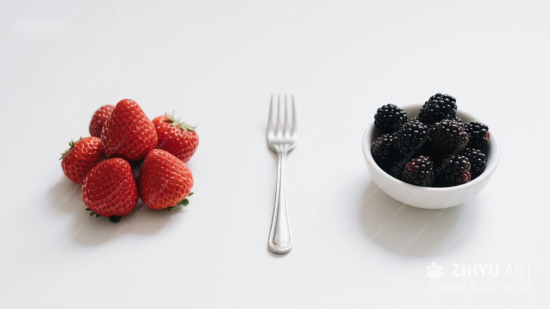 草莓与黑莓的静物对比