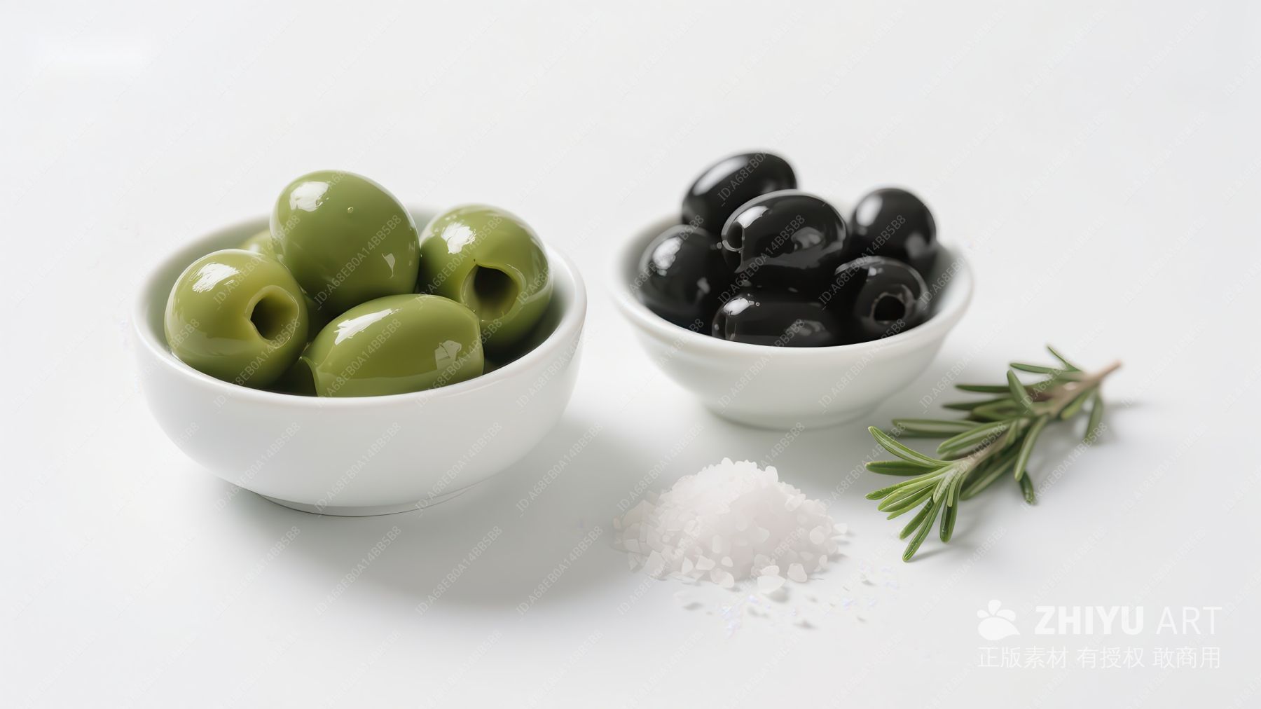 绿黑橄榄配盐与迷迭香