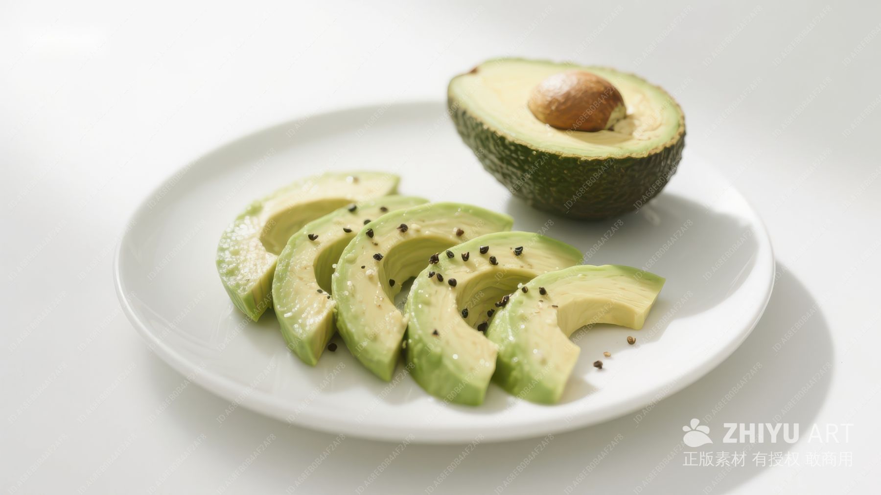 切片牛油果置于白色盘中