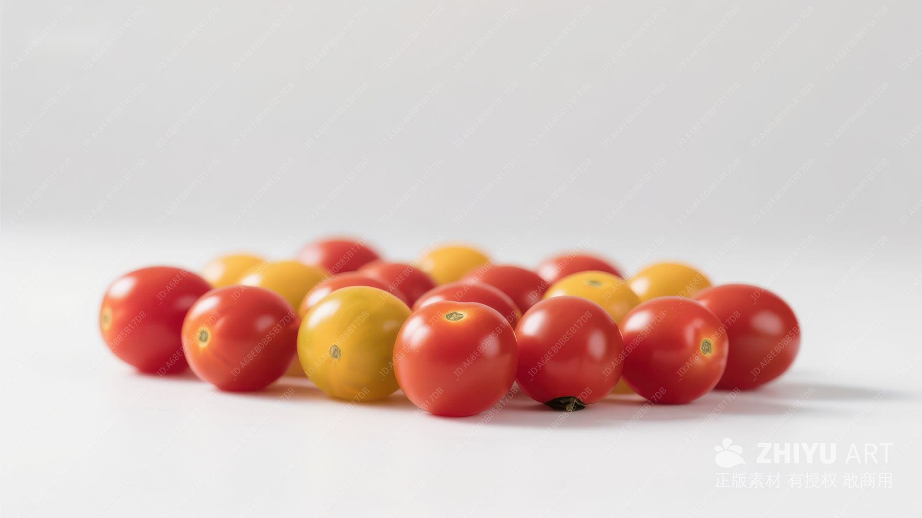 色彩斑斓的樱桃番茄散落于白色布面 424