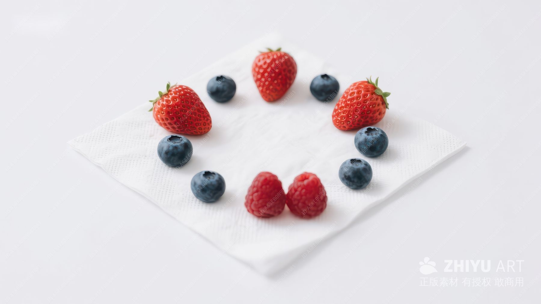 新鲜水果拼盘:草莓、蓝莓与柠檬