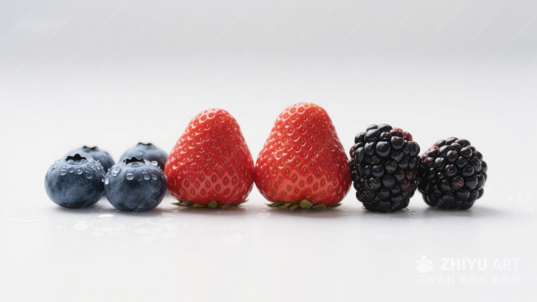 新鲜浆果集合:草莓、蓝莓与黑莓