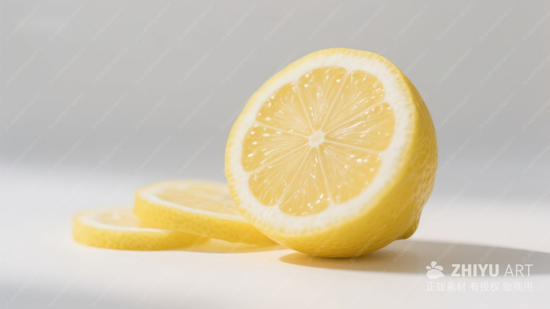 新鲜柠檬切片与完整柠檬的光影展示