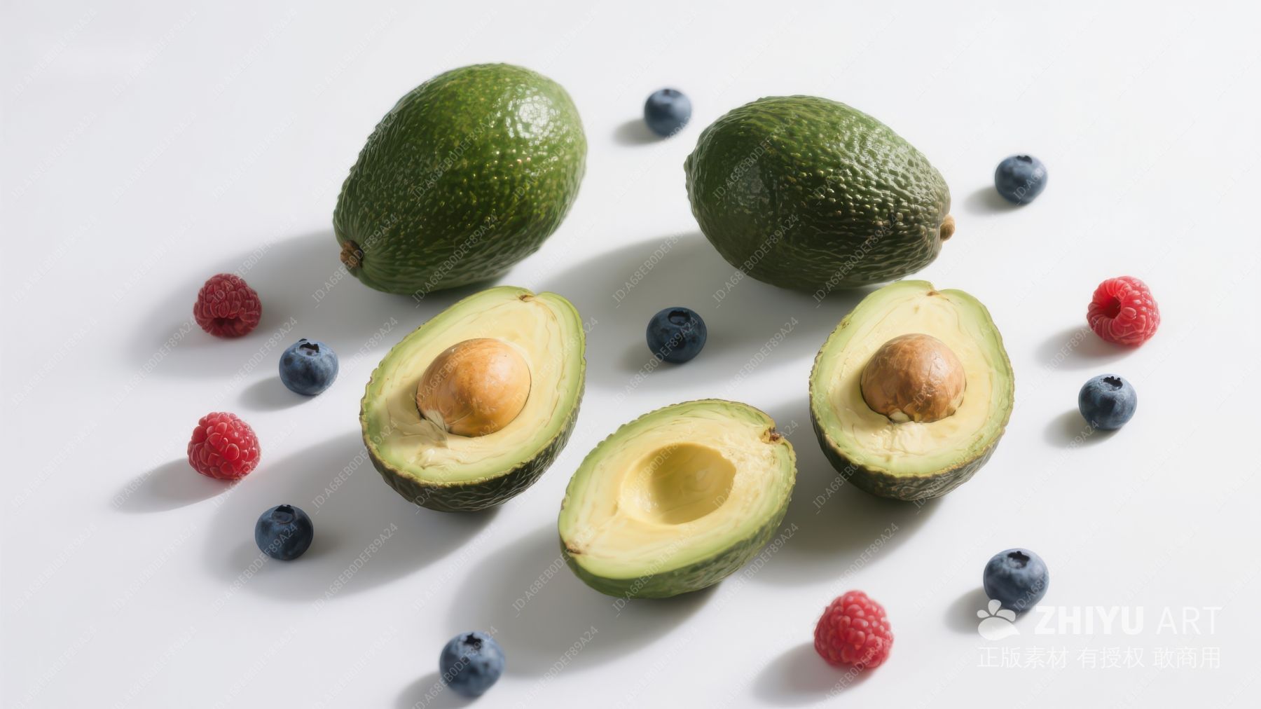 牛油果与浆果的静物组合