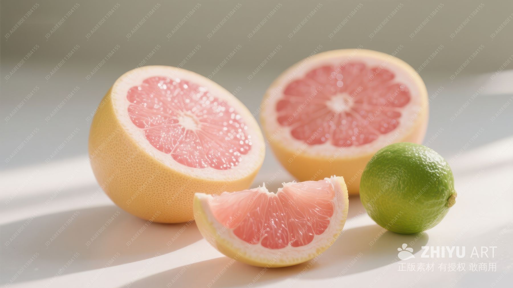 新鲜葡萄柚与青柠的静物组合