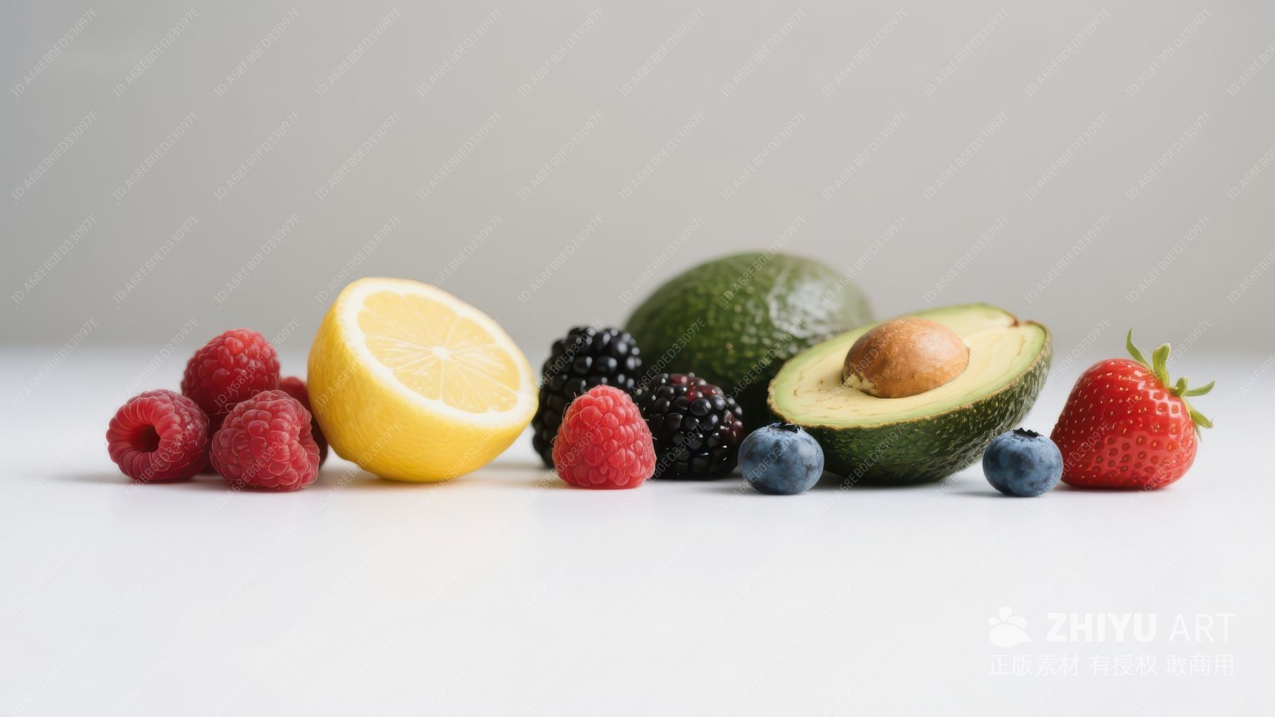 新鲜水果组合,包括牛油果、浆果和柠檬 1005